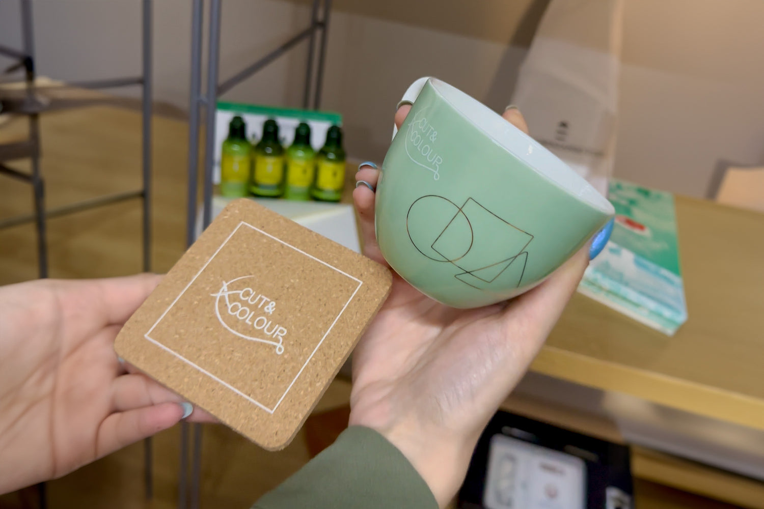 To perfectly capture Cut & Color’s unique brand identity, we worked closely with their team to understand their aesthetic and functional needs. We designed custom coasters and mugs featuring their logo and brand colors, ensuring a cohesive and professional look. Rigorous quality control throughout the production process guaranteed that the final products were durable and of the highest standard.